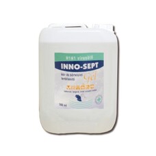 INNO-SEPT higiénés kéztisztító és fertőtlenítő koncentrátum (5 liter) Antimikrobiális spektrum Baktericid (MRSA), tuberkulocid, fungicid, sz.virucid (H1N1) Alkalmazási feltételek Alkalmazás hígítás nélkül, behatási idő szobahőmérsékleten. Felhasználási terület és mód Kézfertőtlenítésre: Felhasználásra kész folyadék foglalkozásszerű felhasználók részére, amely alkalmas minden olyan területen ahol a kéz tisztítása mellett annak fertőtlenítésére is szükség van. Juttassunk 3 ml INNO-SEPT konce...